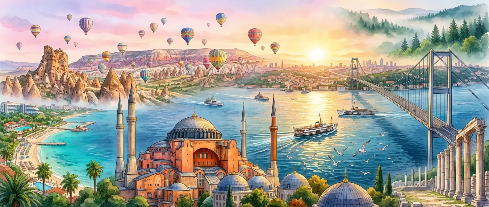 ترکیه در نقطهی تلاقی شرق و غرب قرار گرفته است؛ جایی که در استانبول، نوای اذان با صدای کشتیهای در حال عبور از تنگهی بسفر در هم میآمیزد و در کاپادوکیا، بالنهای رنگارنگ بر فراز صخرههای هزارانساله اوج میگیرند. بر اساس آمار سال ۲۰۲۵، ترکیه با جذب بیش از ۶۵ میلیون گردشگر و درآمدی نزدیک به ۶۵ میلیارد دلار، جایگاه خود را در میان ده مقصد برتر گردشگری جهان تثبیت کرده است.